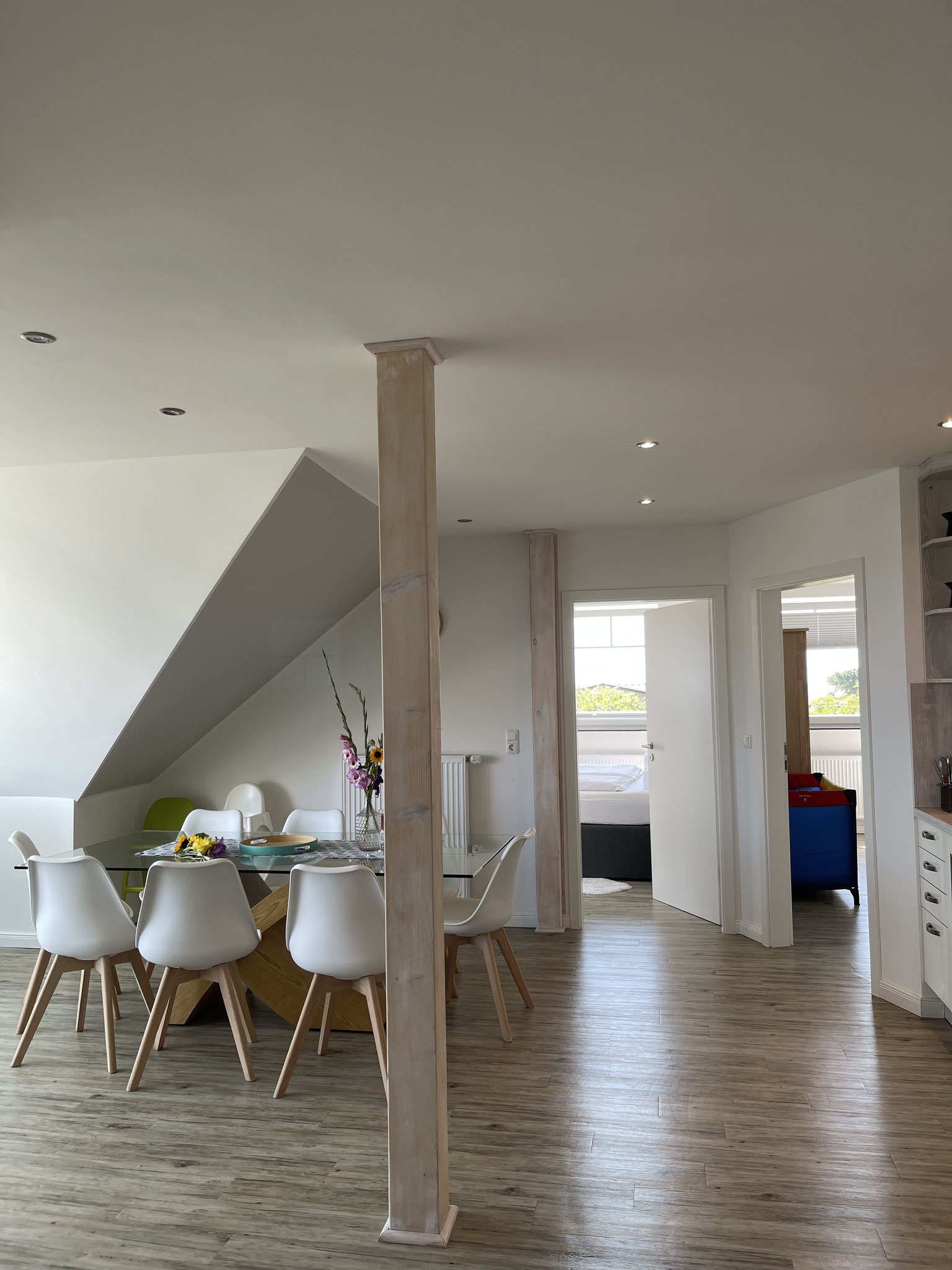 Unsere Ferienhäuser bieten auf rund 105 m² großzügigen Raum mit drei Schlafzimmern und zwei Bodenkojen Platz für 6 Erwachsene und 4 Kinder. Zudem verfügt es über ein luxuriöses Bad inklusive Sauna/ Art Sauna Infrarotkabine, sowie Whirlwanne, einer voll ausgestatteten Küche, einem gemütlichen Wohn-Essbereich mit Holzofen und einer überdachten Sonnenterasse mit eigenem privaten Garten.